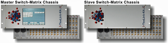 The new FlexLink K4 is a modular and scalable 4RU/19-inch L-band Switch/Routing-Matrix available from 4:4...32:32 inputs/outputs within 4RU/19-inch Master-Chassis, while the Master-/Slave-chassis concept allows to expand the system via integrated cascading-ports, e.g., to 128:128 (increments of 4) without the need of any other additional devices such as splitters/combiners.