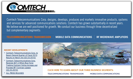 Comtech Telecommunications Corp. (Nasdaq:CMTL) announced their Maryland-based subsidiary, Comtech Mobile Datacom Corporation, received a $27.5 million ceiling increase to its Blue Force Tracking ("BFT-1") program contract with the U.S. Army. The total contract ceiling for its current BFT contract is now $243.5 million and expires December 2011.