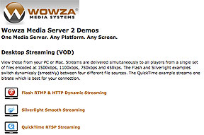 Wowza Media Server 2 is a high-performance media engine that unifies delivery of live and on-demand H.264 video and AAC/MP3 audio streams to multiple clients and devices, eliminating the need for specialized, client-specific servers and encoders. It extends the reach of content to any platform and any screen, encompassing Flash, Silverlight, QuickTime®, and IPTV set-top boxes (STBs), as well as mobile devices such as Android and Blackberry® smartphones and the Apple® iPhone® and iPad®. The Wowza Media Server 3 platform and its value-added components are slated for a production release in the third quarter 2011. Wowza Media Server 3 is a free upgrade for all Wowza Media Server 2 licensees.