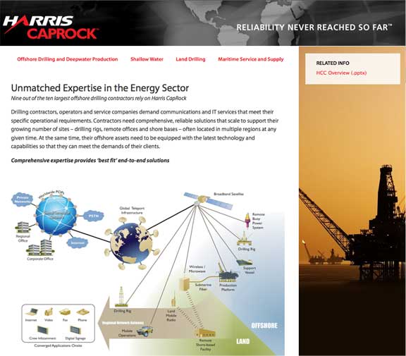 ...major drilling contractor Brasdril for turnkey, Very Small Aperture Terminal (VSAT) communications to 13 of its semisubmersibles and drillships, located along the coast of Brazil. Brasdril Sociedade De Perfurasções Ltda, located in Macaé, Brazil, is a fully owned and operated subsidiary of Diamond Offshore Drilling, Inc., based in Houston, Texas. Harris CapRock will deploy a fully managed, end-to-end VSAT communications solution to enable corporate networking, Internet access and voice services. Brasdril will also receive increased bandwidth as part of the regional network solution, along with equipment, installation, maintenance and 24/7 service and support from Harris CapRock’s Customer Support Center. The solution will enable Brasdril to extend its corporate network to its drilling assets and upgrade communications technology and overall standardization of its customer site maintenance. In addition, Brasdril will receive a bandwidth increase for 11 sites. The bandwidth increase is a result of growing data and application support demands on the client’s existing network.