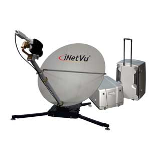 The iNetVu® airline checkable flyaway antenna system is a highly portable unit with a 6-piece carbon fiber reflector that can fit in a suitcase. It is configurable with the auto-pointing 7024 controller, cables and another electronic device such as a modem or PowerSmart power supply that can be installed in the second case.