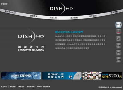DishHD launched the service with a premier package containing more than twice the number of HD channels than any other pay television service in Taiwan. Using the latest digital satellite technology to broadcast in pristine 1080i and crystal clear Dolby Digital 5.1 surround sound, DishHD delivers more than 30 HD channels from Asia and around the world. DishHD also offers a premium set-top-box, the 612t HD DVR, which features two satellite tuners, an interactive electronic program guide, and a 500 gigabyte internal digital video recorder that allows customers to pause, record, and replay live television while simultaneously recording or watching another live TV channel.