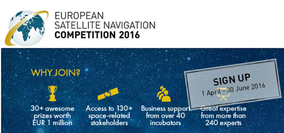 [Satnews] From April 1 to June 30, 2016, the European Satellite Navigation Competition (ESNC)—the largest international competition for the commercial use of satellite navigation—will once again be looking for outstanding ideas and business models. Renowned institutions and regional partners are set to award prizes worth a total of 1 million euros in more than 25 categories.