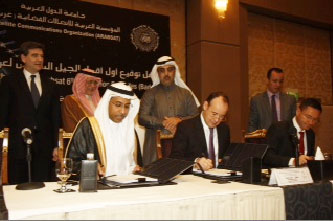 In a ceremony today in Ryadh, Eng. Khalid Balkheyour, ARABSAT president and CEO, Eric Béranger, CEO of Astrium Satellites and Jean-Loïc Galle, CEO of Thales Alenia Space signed the contract which defines the new mission assigned to the satellite.