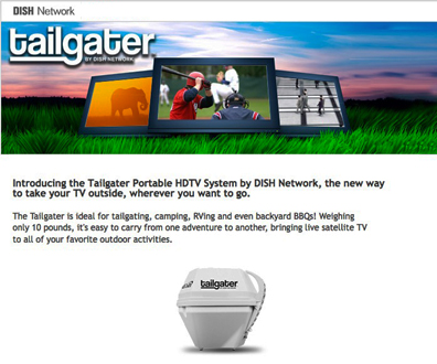 “Tailgaters across the country have wanted an easy way to watch their games in HD, and now they can through DISH Network’s Tailgater – the best value for a portable satellite TV antenna on the market,” said Ira Bahr, Chief Marketing Officer for DISH Network. “The Tailgater’s simple set-up combined with full access to DISH Network’s programming packages at convenient month-to-month pricing makes it the best ‘TV-on-the-go’ option for outdoor enthusiasts.”