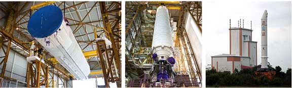This Ariane 5 will be used on a flight scheduled for June 19th with Europe’s Meteosat Second Generation-3 (MSG-3) weather satellite for the European Space Agency and EUMETSAT (the European Organisation for the Exploitation of Meteorological Satellites); along with the EchoStar XVII high-throughput telecommunications platform for Hughes Network Systems.