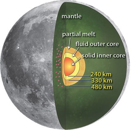 Uncovering details about the lunar core is critical for developing accurate models of the moon's formation. The data sheds light on the evolution of a lunar dynamo — a natural process by which our moon may have generated and maintained its own strong magnetic field. The team's findings suggest the moon possesses a solid, iron-rich inner core with a radius of nearly 150 miles and a fluid, primarily liquid-iron outer core with a radius of roughly 205 miles. Where it differs from Earth is a partially molten boundary layer around the core estimated to have a radius of nearly 300 miles. The research indicates the core contains a small percentage of light elements such as sulfur, echoing new seismology research on Earth that suggests the presence of light elements -- such as sulfur and oxygen -- in a layer around our own core.