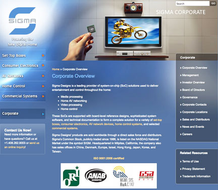 [SatBroadcasting(tm)] Sigma Designs (NASDAQ: SIGM) has introduced their SMP8910 media processor.