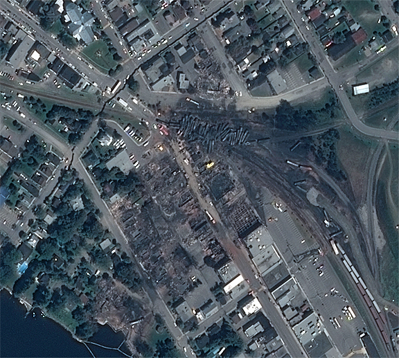 This picture was taken after Public Safety Canada activated the International Charter on Space and Major Disasters, in which the Canadian Space Agency (CSA) is actively involved. The data shared in the context of the Charter help damage assessment and supported recovery efforts.