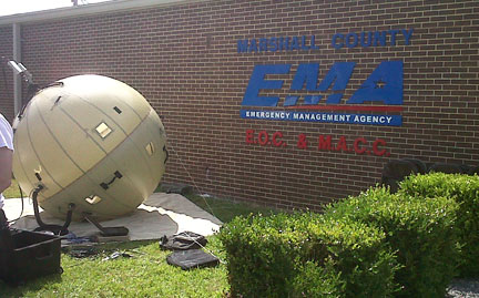 GATR’s inflatable antennas have been providing communications to emergency responders, community leaders, and affected residents since the morning after (4/28/11) the storms that generated tornados in the southeast United States. “We are always prepared to quickly respond with our technology in the wake of catastrophic events, but we didn’t expect to respond to a disaster in our own community,” said Paul Gierow, President at GATR Technologies. “This is exactly what our products are geared for… first-in deployments, remote applications and contingency scenarios.” Agencies, victims, volunteers, and companies all were impressed with the ‘Ball of Connectivity,’ even though it operates exactly like a precision rigid satellite dish/terminal; the unique inflated ball, designed for extreme portability, always attracts attention. The GATR is currently used by U.S. Military, Intelligence, and Homeland Security (FEMA) organizations to provide first-in communications in remote areas and contingency situations at Ku-, C-, and X-band.