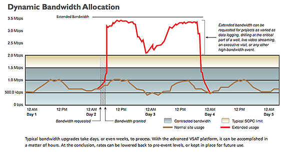 Harris CapRock’s Advanced VSAT is the first secure, cost-effective service that dynamically reassigns satellite capacity according to need and availability in real time to meet the growing communications requirements of offshore and deepwater operations.