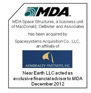 Near Earth LLC was the exclusive financial advisor to MacDonald, Dettwiler and Associates, Ltd. for this transaction.