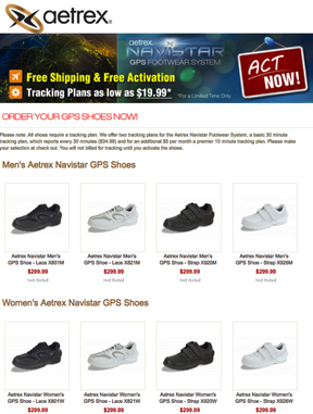 The Aetrex Navistar™ GPS Shoes, powered by GTX Corp., go on sale through Safe Track’s e-commerce website, www.safetracksgps.ca. Further, Canada’s largest GSM cell phone provider, with more than 9.2 million users servicing 95 percent of Canada’s population, will be the Canadian wireless provider for the GPS Shoes.