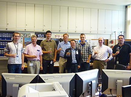 A TNO team celebrate the success of Proba-2's COGEX (Cool-Gas Experiment). On 16 August the ESA's satellite's xenon resistojet engine tank was topped up with gaseous nitrogen released from a store of solid propellant