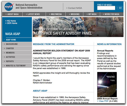 For more information about the Aerospace Safety Advisory Panel and to view the 2009 report, visit http://www.hq.nasa.gov/office/oer/asap/index.htm