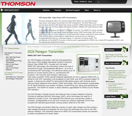 [SatBroadcasting™] Arqiva, a communications infrastructure and media services company, has selected Thomson Broadcast (formerly the transmission division of Grass Valley) for the high-power sites of its new DVB-T2 network for terrestrial HD services in the United Kingdom. Thomson Broadcast is deploying, from 2010 to 2012, 16 high-power DCX Paragon MSDC-IOT transmitters with an output power up to 20 kW. The first on-air installation is set for later this year. As a long-time supplier to Arqiva, Thomson Broadcast is also upgrading the four already installed DVB-T DCX Paragon transmitters with new high-performance DVB-T2 Sirius exciters. The new generation of solid-state Elite GreenPower transmitters is also equipped with the Sirius open-platform exciter, which features real-time Digital Adaptive Pre-correction (DAP) for excellent stability and signal quality — regardless of variations in typical environmental conditions.