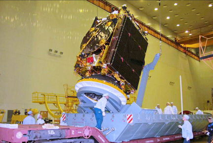 Amos-5 during pre-launch processing in Baikonur in November 2011. Credit: Roskosmos