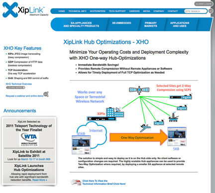 XipLink, a technology leader in wireless optimization, has announced that the company’s XipLink Hub Optimizations (XHO) product has been named as the Teleport Technology of the Year by the World Teleport Association. The XipLink XHO solution provides teleport and network operators immediate bandwidth savings on outbound web traffic as well as providing sophisticated class-based queuing for IP traffic management purposes and split PEP operation to optimize TCP sessions on both the outbound satellite path and the Internet backhaul access. The innovations include simplicity of deployment as a hub side only device and the ability to selectively “bracket” remote connections for full two-way TCP, UDP and web optimizations at a capital efficient price. “XipLink is grateful to the World Teleport Association for selecting XHO as the technology of the year,” said Jack Waters, XipLink CEO. “We are honored to be recognized for the impact XHO has made on the industry. More specifically, we are extremely pleased to be able to provide Teleport or Network Operators a higher level of service thus becoming more competitive with wire-line technologies. Our customers, employees and advisors deserve the highest accolades for translating market requirements into a world class product.”