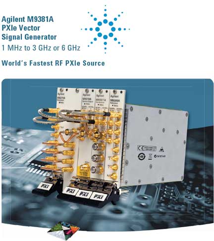 ...vector signal generator in a PXI form factor. The Agilent M9381A is a 1- to 3MHz, or 6GHz, VSG that combines fast switching and excellent RF parametric performance: high output power, linearity and superior level accuracy, outstanding adjacent channel power ratio performance (for output levels up to +10 dBm or more) and wide modulation bandwidth (up to 160 MHz) for testing RF devices. Agilent designed the M9381A for applications such as testing and validating the design of public safety and military radios, wireless power amplifiers and transceivers, and cellular base stations (primarily picocell and femtocell). The new PXIe VSG does more tests in less time, which reduces the cost of testing. Agilent’s exclusive baseband-tuning technology innovation enables frequency and amplitude switching speed as fast as 10 µs in list mode and 250 µs from its programming interface. The switching speed is further enhanced by excellent linearity and repeatability associated with Agilent’s signal generators. The Agilent M9381A PXIe vector signal generator simulates complex real-world communications signals through Agilent’s Signal Studio software. Signal Studio is a flexible suite of signal-creation tools that offers performance-optimized reference signals validated by Agilent to support standards such as LTE and 802.11ac.