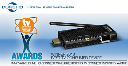 All three companies will demonstrate the integrated Dune HD TV-102AW at NAB in the Dune HD booth #SU11614 and the Beenius booth #A508 in the Connected Media World zone. Dune HD will also demonstrate its award-winning Dune HD Connect StickSTB™, the world’s most compact device for OTT and IPTV content delivery, and the new Dune HD TV-303D, a high performance, full-featured connected STB with 3D and OpenGL support. Dune HD will also demonstrate Qarva’s FastSwitch™ sub-500ms channel changing technology integrated into its products for IPTV applications. All products in the Dune HD line feature the powerful Sigma Designs chipset for extreme speed and performance, full HD 1080p video, IPTV/VOD/OTT streaming technologies, internal or external storage options and elegant, modern designs.