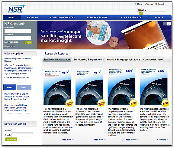 - The Events section gives you a peek at our annual events calendar along with important satellite industry related conferences & NSR Speaking engagements across the globe where you can meet us face-to-face