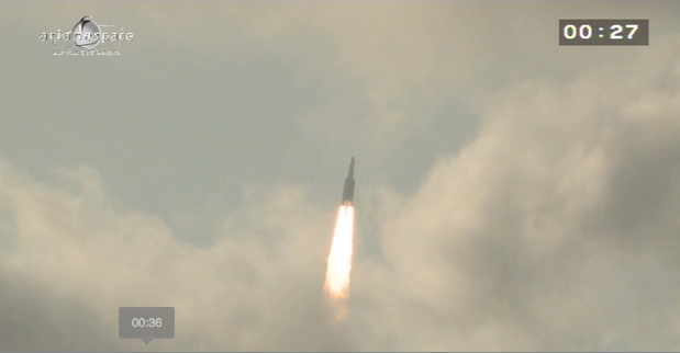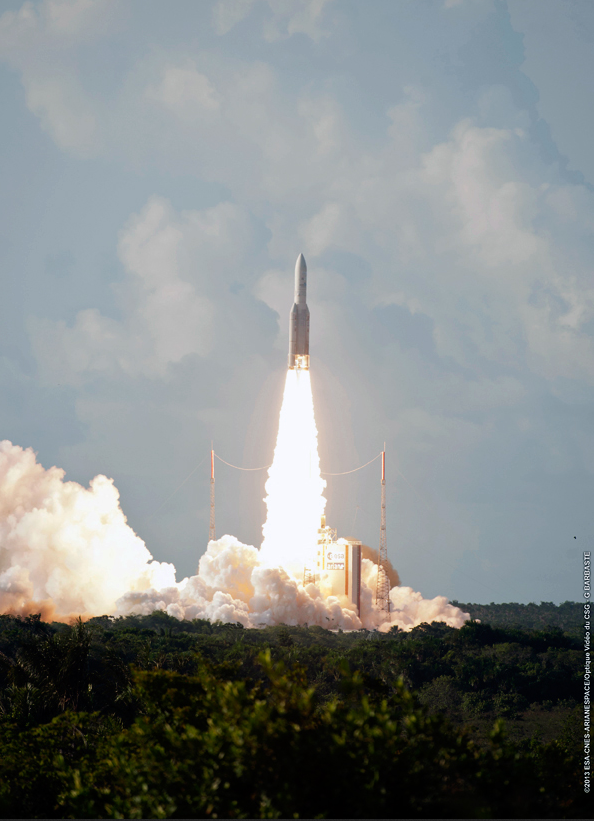 This evening, an Ariane 5 launcher lifted off from Europe’s Spaceport in French Guiana on its mission to place two communications satellites, Eutelsat 25B/Es’hail 1 and GSAT-7, into their planned geostationary transfer orbits.