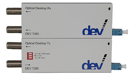 ...Radio Frequency (RF) signals over fiber optic links of up to 5 kilometers over Extended L-band. The new products offer advantages for use in cable TV heads, as well satellite news gathering (SNG) vehicles. With options for low-budget applications and test setups, the new modules also offer a low-cost alternative to DEV’s standard OPTRIBUTION® models, which feature more redundancy, control and monitoring functions, and higher design availability.