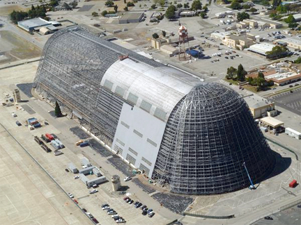 Photo of Hangar 1 at Moffett Field in Mountain View, California.