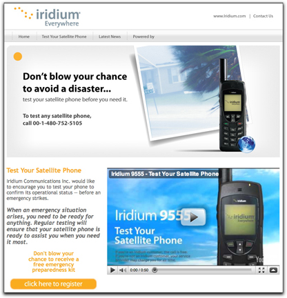 [SatNews] Iridium Communications Inc. (Nasdaq: IRDM has launched its fourth annual “Test Your Satellite Phone” (TYSP) Week initiative, reminding users to make sure their satellite phones are ready to deploy at a moment’s notice when natural or manmade disasters strike.