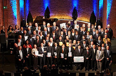 Winners, special prize sponsors, regional organisers and participants at the European Satellite Navigation Competition 2010 award ceremony on 18 October 2010 in Munich, Germany. Credits: Simone Hörmann / European Satellite Navigation Competition
