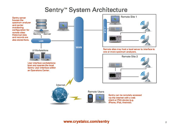 Featured in Crystal Solutions' SATCON 2012 Booth #322, Sentry is the industry's newest spectrum monitoring solution. An affordable, easy-to-use software program, Sentry™ is ideally suited for television network broadcasting, satellite service providers, network operation centers, data and Internet, cell tower and ENG and microwave monitoring.