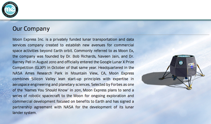 Both Moon Express and RCSP/Dynetics were selected by NASA in the fall of 2010 for commercial lunar data contracts worth up to $10 million each. Moon Express and RCSP have been recognized as leading contenders for the $30 million Google Lunar X PRIZE. Both entered the competition in 2010, with RCSP engaging a consortium of highly reputable and experienced partners from the Huntsville area to become one of the most formidable Google Lunar X PRIZE contenders. With the deep technical expertise and contributions of Dynetics and its partners, together with support from the State of Alabama and the notoriety of its team leader, RCSP engaged the hearts and minds of schoolchildren and the public in a substantial STEM outreach program, while advancing its technical plans and developing prototype propulsion systems for its lunar lander.