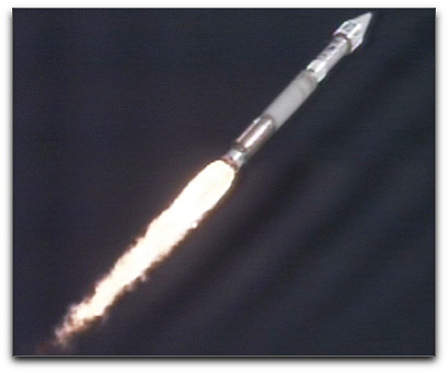 he Atlas V rocket carrying the Solar Dynamics Observatory speeds into space shortly after launch Thursday morning from Cape Canaveral Air Force Station in Florida. Photo credit: NASA TV