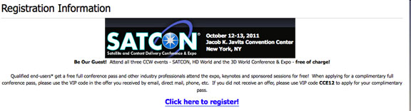 This will be the 10th annual Satellite Communications Conference & Expo and it will be held from October 12th through the 13th, 2011, in New York, NY. Offeredd will be 40+ conference sessions, more than 160 speakers, a special military breakfast, some 300+ exhibits as well as many networking events. Qualified end-users* may attend all conference sessions free of charge!