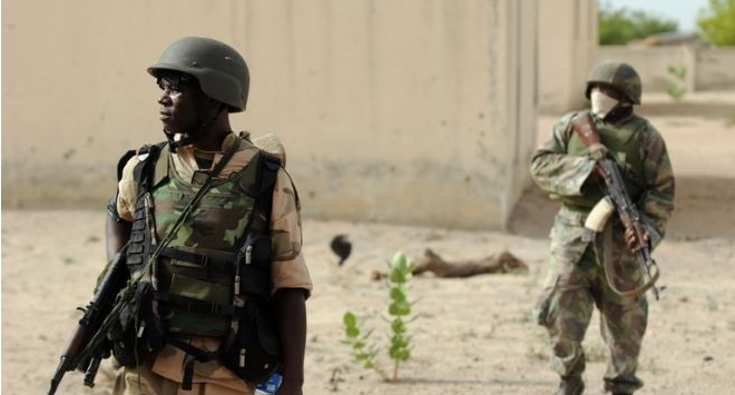 Nigerian soldiers patrol in the north of Borno state on June 5, 2013 near a deserted Boko Haram camp. Nigeria's military has banned the use of satellite phones in much of the restive northeast after cutting mobile phone service, further isolating the area after a series of fresh attacks. (AFP/File & Fox News)