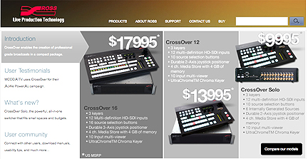 Ross Video has announced significant price reductions for the CrossOver 12 and CrossOver 16 compact production switcher models. “The CrossOver product line has enjoyed significant sales growth this year and as a result we are now able to take advantage of even better quantity component pricing from our vendors,” said Nigel Spratling, Switcher Marketing Product Manager/Communications, Ross Video. “The CrossOver line has always been value priced, but the recent component price reductions have a significant impact on overall costs. At Ross we adhere to a fair pricing policy, so instead of keeping additional margin that these reductions bring we choose to pass such savings along to our customers.” Both versions are fully loaded systems with a feature set that is without comparison for switchers of this size.