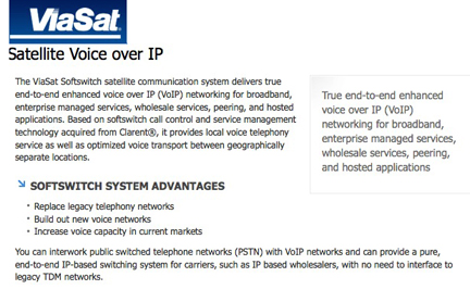ViaSat Inc. (NASDAQ: VSAT) is supplying its Edge Access Voice-over-Internet Protocol (VoIP) system to Grupo TVSA of Argentina, enabling the CATV and broadband Internet provider to offer triple play services. The ViaSat softswitch communication system delivers end-to-end, enhanced satellite VoIP networking for broadband, enterprise managed services, wholesale services, peering, and hosted applications.
