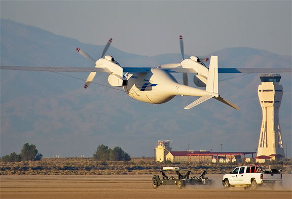 ...autonomous flight June 1 at NASA's Dryden Flight Research Center at Edwards Air Force Base, California. The 28-minute flight began at 6:22 a.m. Pacific time as the liquid-hydrogen powered aircraft lifted off its launch cart. Phantom Eye climbed to an altitude of 4,080 feet and reached a cruising speed of 62 knots. After touching down, the vehicle sustained some damage when the landing gear dug into the lakebed and broke.