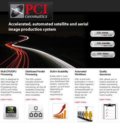 PCI Geomatics, a leading developer of geo-imaging software and systems, has been awarded a contract and has also successfully delivered a GeoImaging Accelerator (GXL) satellite processing system to RapidEye. The GXL system includes support for the automated orthorectification and mosaicking of the imagery collected by the RapidEye satellite constellation. PCI Geomatics has delivered a GXL-Satellite system that integrates locally procured off-the-shelf hardware with PCI’s GeoImaging Accelerator-Satellite high volume multi-CPU/GPU production software. The complete system will enable RapidEye to transform uncorrected imagery into seamless mosaics comprised of thousands of images – thereby automating the production chain. The GXL-Satellite system will boast throughput capability of up to 10 Terrabytes per day. The adoption of PCI’s GXL software by companies across the globe proves the viability of this technology for the company as it invests more heavily in its development. PCI Geomatics has delivered other GXL systems to numerous customers in North America, Europe and Asia.