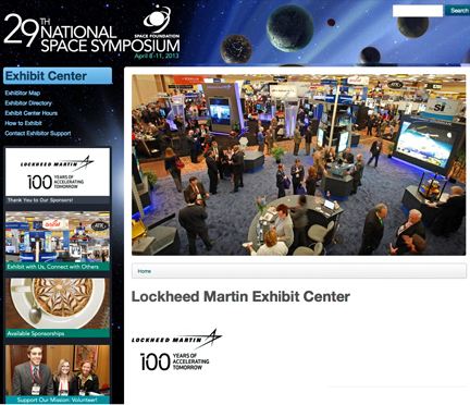 ...dynamic Lockheed Martin Exhibit Center and Lockheed Martin Exhibit Center Pavilion, featuring the latest in space technology, products and services and the greatest number of international exhibits in Space Symposium history. More than 160 space-related companies, educational institutions, associations and organizations will be on display for Space Symposium registrants, invited guests, uniformed military and select groups of teachers and students. The exhibit center is not open to the general public.