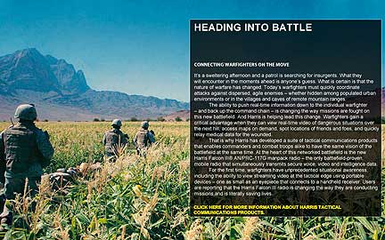 Harris RF Communications is the leading global supplier of secure radio communications and embedded high-grade encryption solutions for military, government and commercial organizations. The company's Falcon® family of software-defined tactical radio systems encompasses manpack, handheld and vehicular applications. Falcon III is the next generation of radios supporting the U.S. military's Joint Tactical Radio System (JTRS) requirements, as well as network-centric operations worldwide. Harris RF Communications is also a leading supplier of assured communications® systems and equipment for public safety, utility and transportation markets — with products ranging from the most advanced IP voice and data networks to portable and mobile single- and multiband radios.