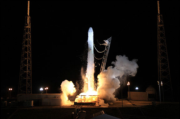 Space Exploration Technologies (SpaceX) today successfully launched its Dragon spacecraft aboard a Falcon 9 rocket on the first official cargo resupply mission to the International Space Station. The launch went off on schedule at 8:35 p.m. ET from Launch Complex 40 in Cape Canaveral, Florida.