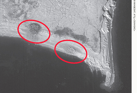 Walrus whelping spots on the Matveev Island, “Nenetsky” state strict nature reserve. EROS B image, acquired on 04.09.2011 (c) Imagesat Int., ScanEx RDC, 2011