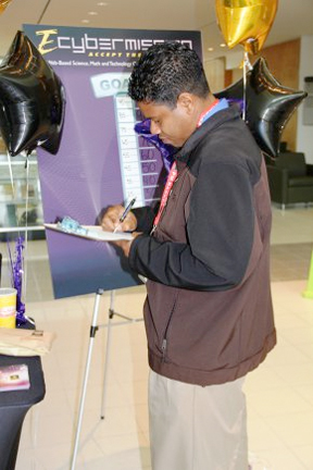 ...for students during an annual sign-up road show at the Command, Control, Communications, Computers, Intelligence, Surveillance and Reconnaissance, or C4ISR, campus at Aberdeen Proving Ground, Maryland, on December 11, 2012. The eCYBERMISSION road show hosted by the Research, Development and Engineering Command's communications-electronics center, or CERDEC, recruited members of the C4ISR community to participate in the Army Educational Outreach Program, which challenges student teams in grades six-through-nine to apply the scientific method to solve a problem in their community.