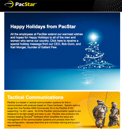 ....for the delivery of several hundred of the firm's mobile tactical communications units to U.S. Forces-Afghanistan (USFOR-A). PacStar will deliver 225 units of its 2010 SIPR / NIPR Baseband Node (SNBN), which provides secure, converged, unified communications, over wired 3G/4G, WiMax and satellite networks. The firm will also deliver 450 units of its PacStar 2011 SIPR / NIPR / Coalition Enclaves (SNCE), which, when combined with the PacStar 2010, provides USFOR-A with simultaneous, expanded access to three major command and control communications networks (NIPR / SIPR / CENTRIXS) that will connect to established Harris RF-7800W Broadband Ethernet Radio antennas.