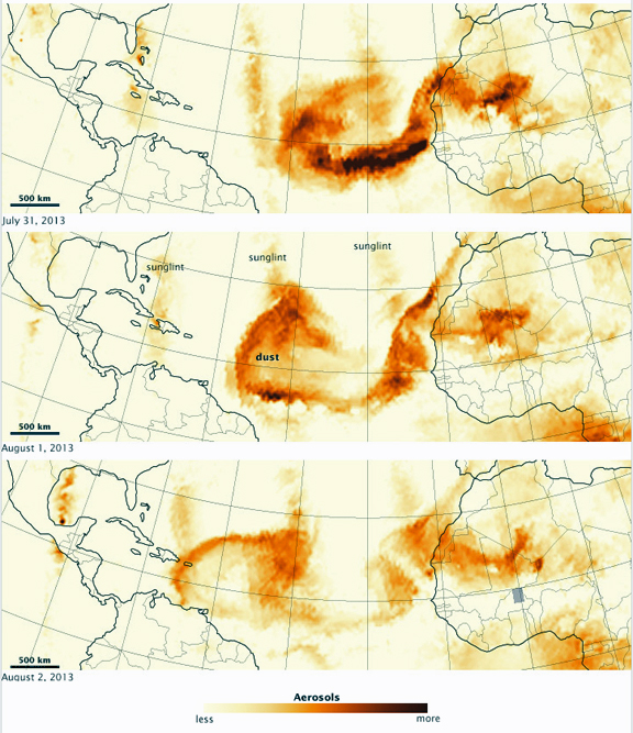 Here are some more satellite images of Saharan dust in the summer of 2013