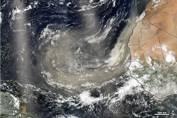 “Dust has long blown across the Atlantic from Africa, but only during the past several decades of satellite observations have we begun to appreciate the vast scale of these events,” wrote Norman Kuring, a member of the ocean color group at NASA Goddard. “Estimates of the dust transported run to hundreds of millions of tons per year, yet we still know relatively little about the effects on phytoplankton productivity, climate, and human health.”
