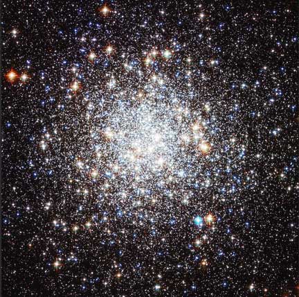 As well as showing the individual stars, Hubble’s image clearly shows the different colors of the stars. A star’s color is directly related to its temperature— counter-intuitively, perhaps, the redder it is, the cooler it is; and the bluer it is, the hotter. The wide range of stellar temperatures here is clearly displayed by the broad palette of colors visible in Hubble’s image of Messier 9.