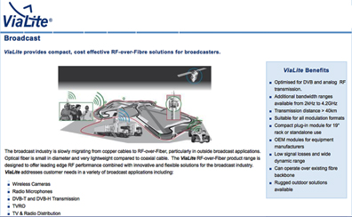 The new ViaLiteHD fiber-optic link system has made its debut at the 65th annual Tony awards show on Broadway in New York. Firehouse Productions Inc., the company responsible for the complete sound system for the show, deployed the space efficient system to transmit all audio signals for the broadcast.