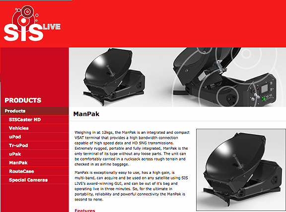ManPak will be demonstrated at CABSAT in Dubai and launched at NAB in April. Also on display at CABSAT will be uPak® 60, a fully automated lightweight, flat plate VSAT terminal, Tr-uPod®, a compact tripod satellite uplink system, uPod®, an automated drive/fly system and RouteCase®, the powerful, compact and affordable 4 channel HD/SDI production unit. These products have been developed and built in-house by the SIS LIVE design team based on specific requirements identified and feedback gained in the field. SIS LIVE will also be promoting its numerous service offerings, which include wireless camera solutions, microwave links, custom built radio frequency systems, broadcast systems integration services and special cameras. SIS LIVE is highly experienced in providing broadcast integration solutions to their clients, and combining products and services from their wide-ranging business, to deliver end-to-end and cost efficient results. SIS LIVE company information link.